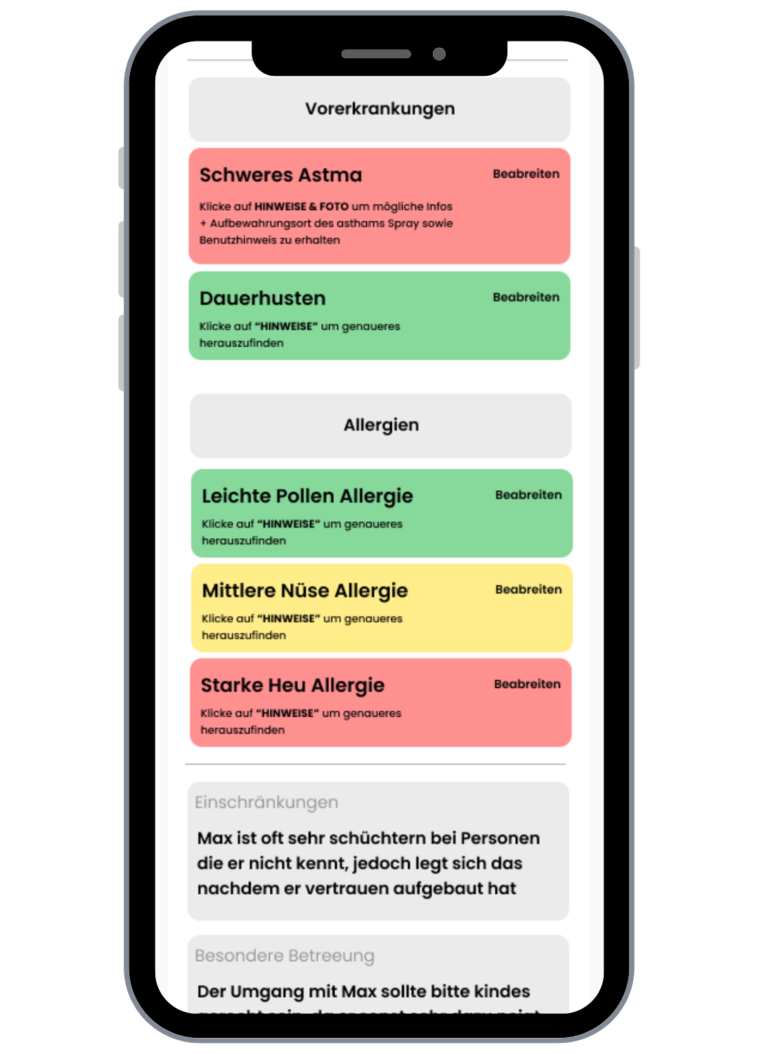 Ob Allergien, Vorerkrankungen, Adresse, Schule oder Notfallkontakte: Du legst fest, welche Infos beim Scan sichtbar sind.